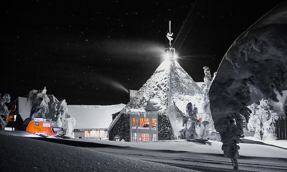 Dress warm in snow boots and layers you can remove as you warm up, and don’t forget a hat, gloves, and goggles. Bring water and snacks in a small backpack. Wear your own snowshoes or rent them at Timberline for $27. If you’re missing any gear, stop in at the Wy'East Store.