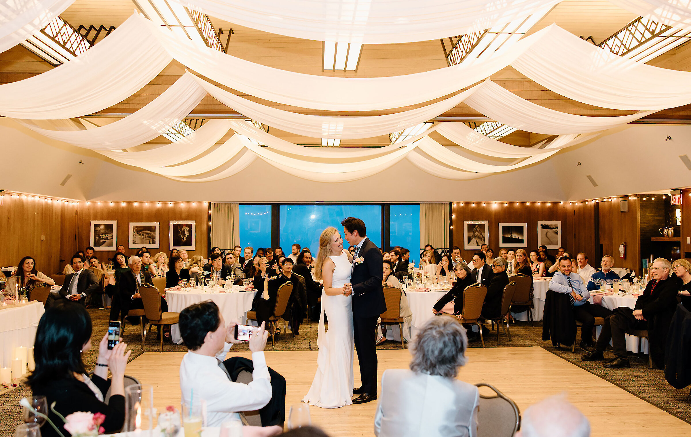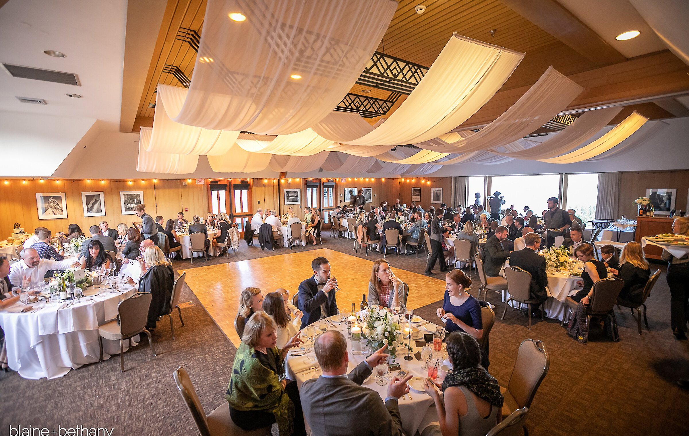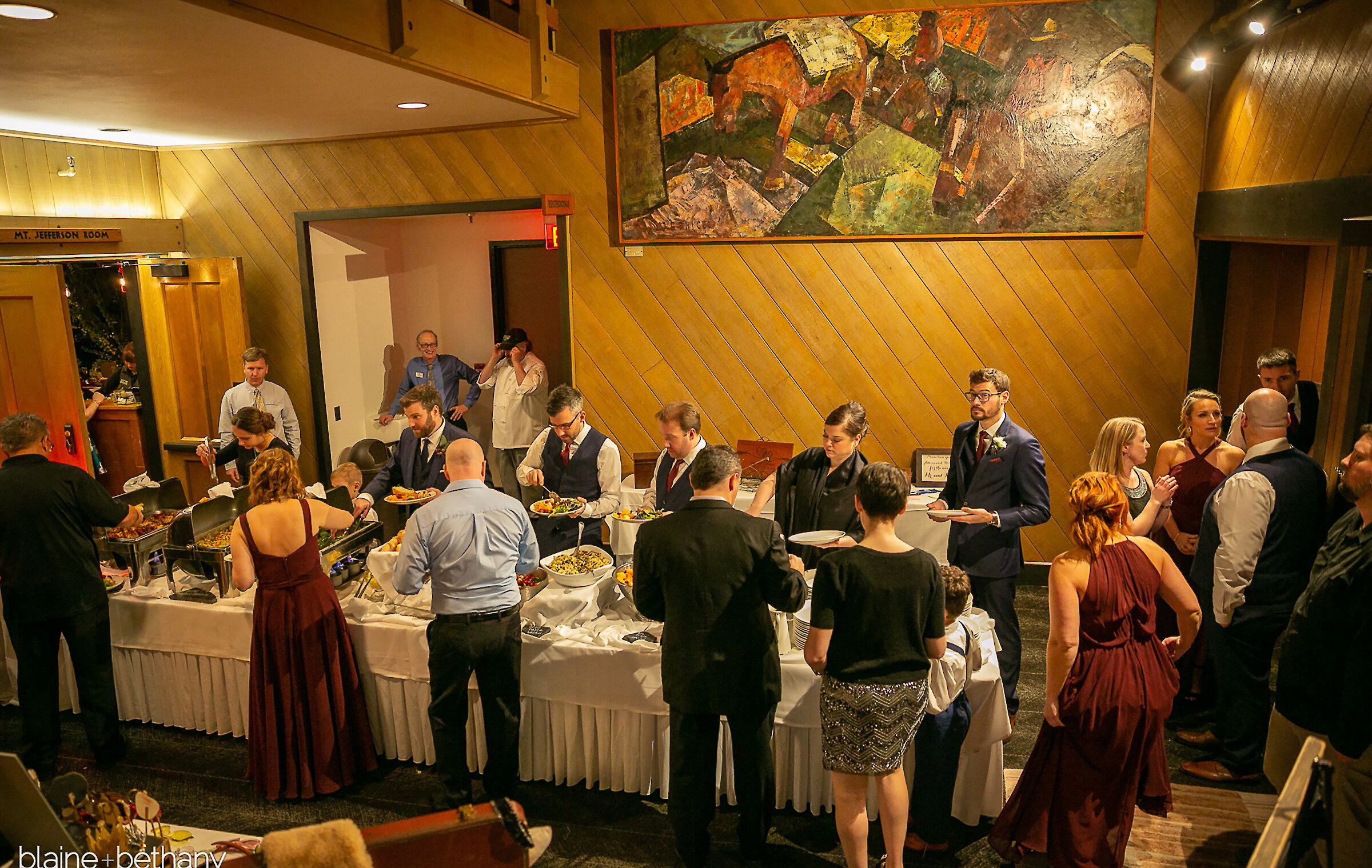 Step into Ullman Hall, Timberline’s premier wedding venue—a grand, light-filled space with soaring 16-foot ceilings and floor-to-ceiling windows framing breathtaking views of Mt. Hood and the Cascade Range. Elegant French doors open onto a spacious patio, ideal for cocktail hours beneath the mountain sky. With a built-in dance floor, ambient wrought-iron lighting, and seamless indoor-outdoor flow, Ullman Hall sets the stage for an unforgettable celebration.